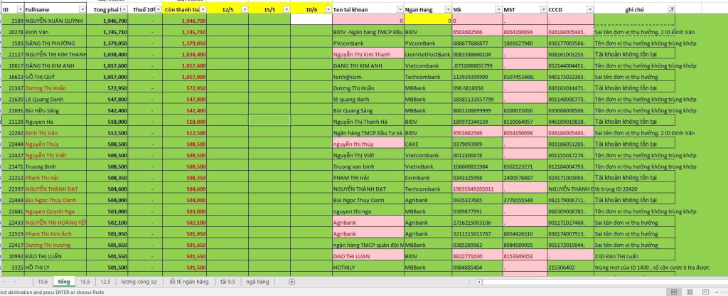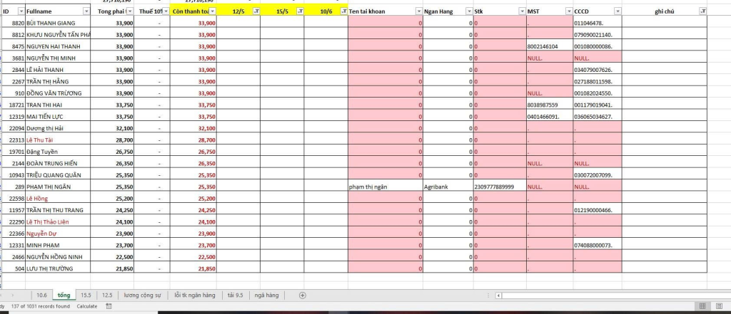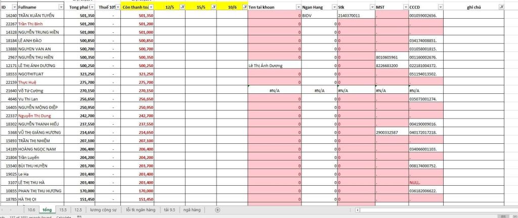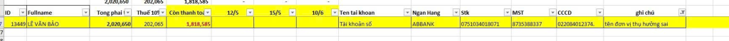 Công ty gửi lại anh/chị những anh chị có thu nhập tháng 4 nhưng thông tin chuyển khoản đang bị sai , bị thiếu anh chị cập nhật lại trong hôm nay để kế toán đẩy thưởng cho anh/chị ạ.